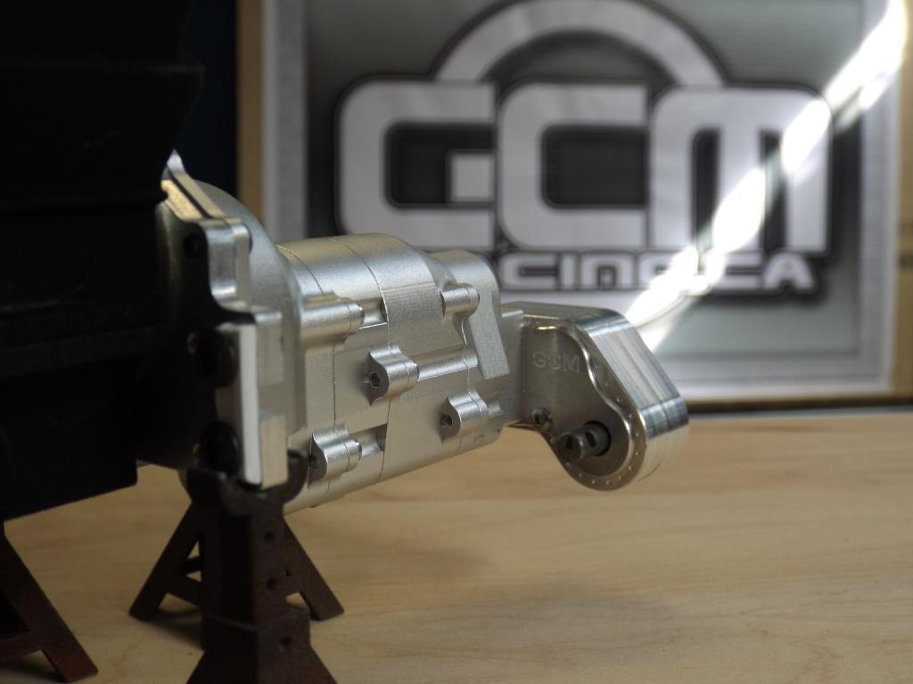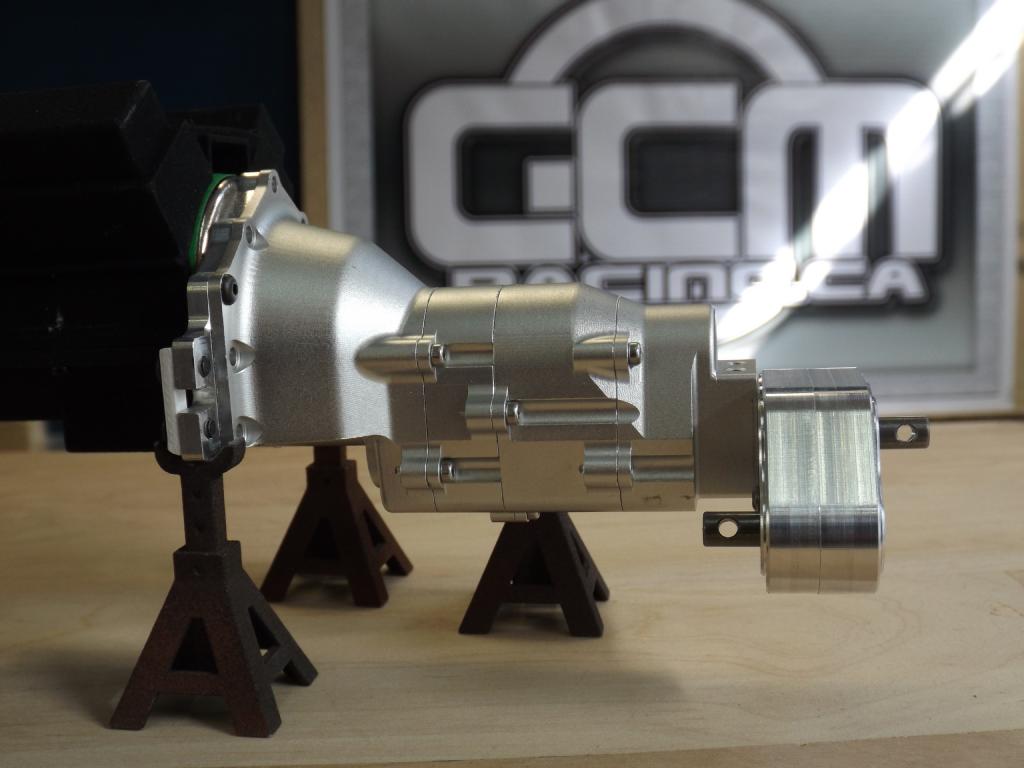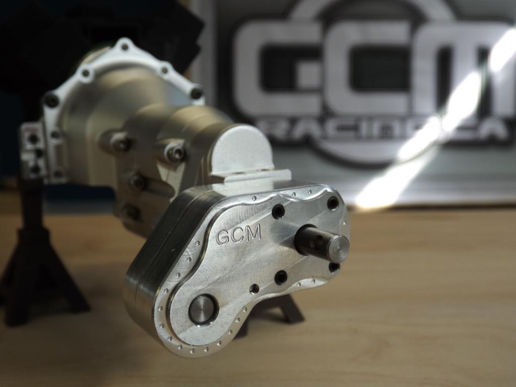 This properly designed 'married' T-Case is a perfect match for the GCM motor plate setup, and fits directly on to the RC4wd R4 Scale transmission (part # Z-U0031). Using a 3 gear internal and a newly designed top gear in the trans output, this hardened and bomb proof setup will take any power your truck can handle! Designed and built at GCM with front shaft OVERDRIVE built in already, this is a super scale tough competitor in the scale truck drivetrain sector, allowing a true scale truck setup with a left or right dropped front output and a centered rear output. You can't get it easier than this. Bolt it up, get great driveline angles, and run it hard!