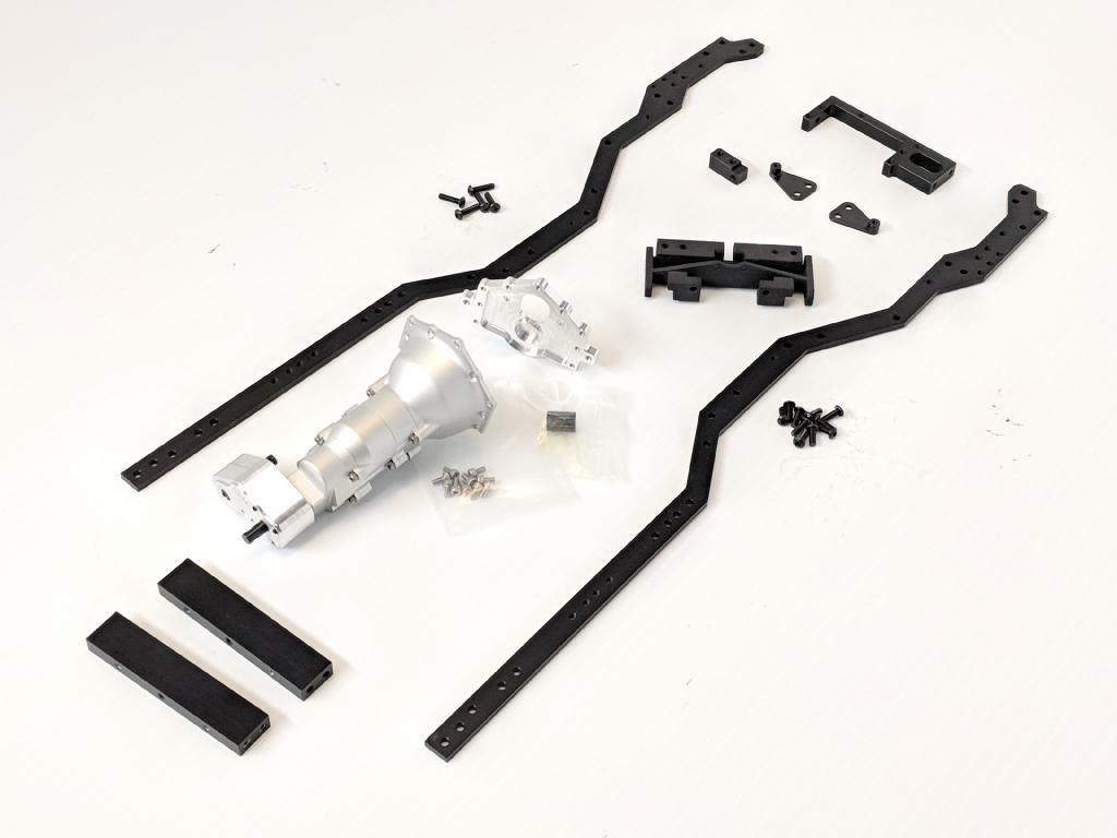 Building this kit successfully will require a centered rear axle, a offset front axle (for driveshaft clearance) and short shocks.